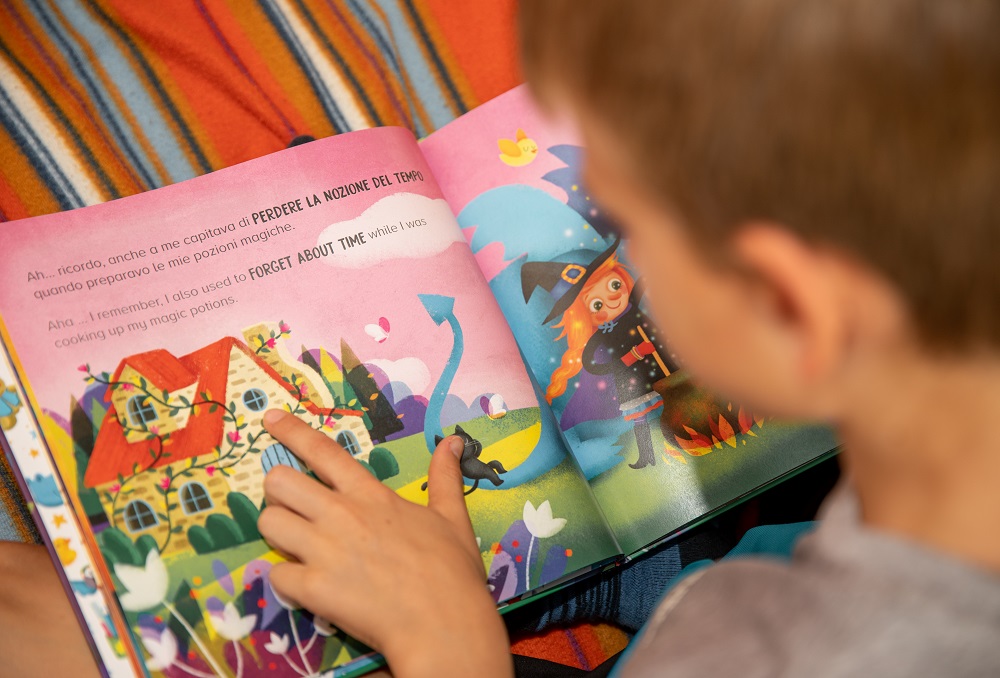 Sinu sem kupila dvojezično personalizirano knjigo, ker je mož Anglež in govori s sinom izključno v angleščini. Vsi ostali pa govorimo italijanski jezik. Manuelu je knjiga tako zelo všeč, da jo je nesel pokazat v vrtec!